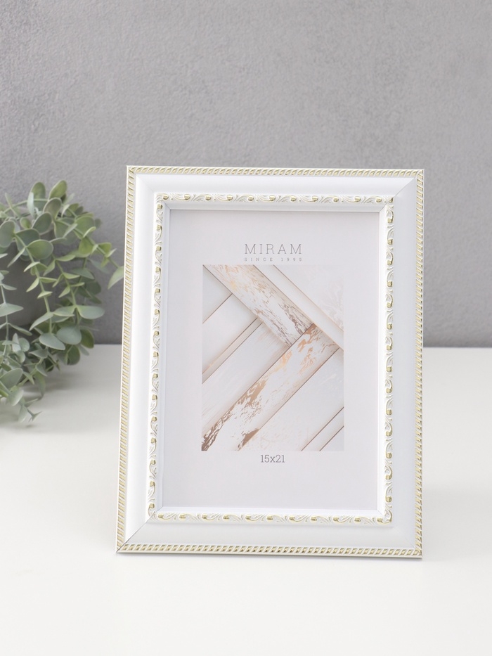 Фоторамка пластик "МИРАМ" 15х21 см, белый с золотом
