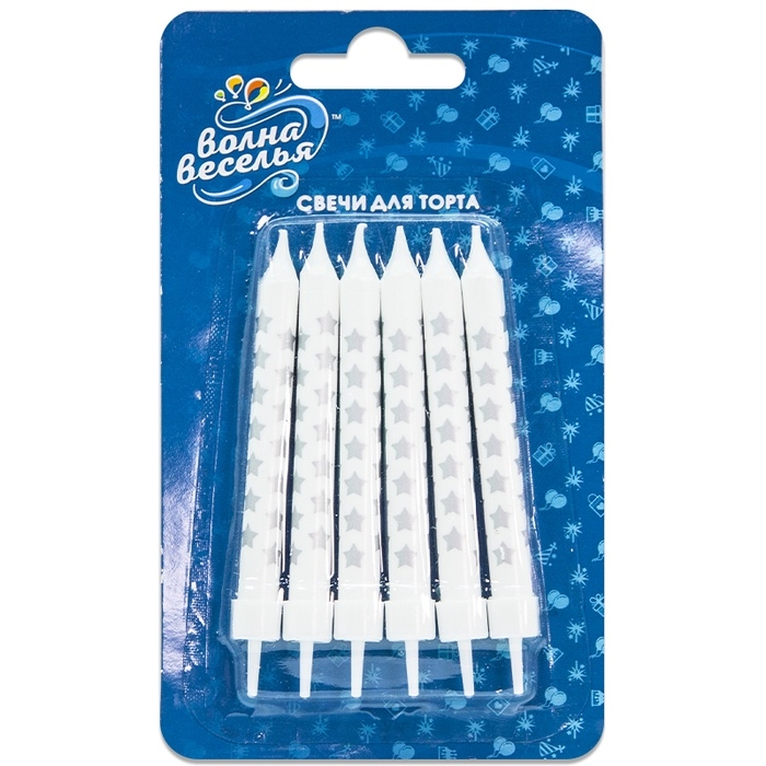 Набор свечей для торта «Серебряные звезды», белый металлик, 7.5 см, 6 шт.