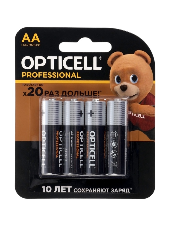 Батарейка алкалиновая OPTICELL PROFESSIONAL, AA, LR06-4BL, 1.5В, блистер, 4 шт