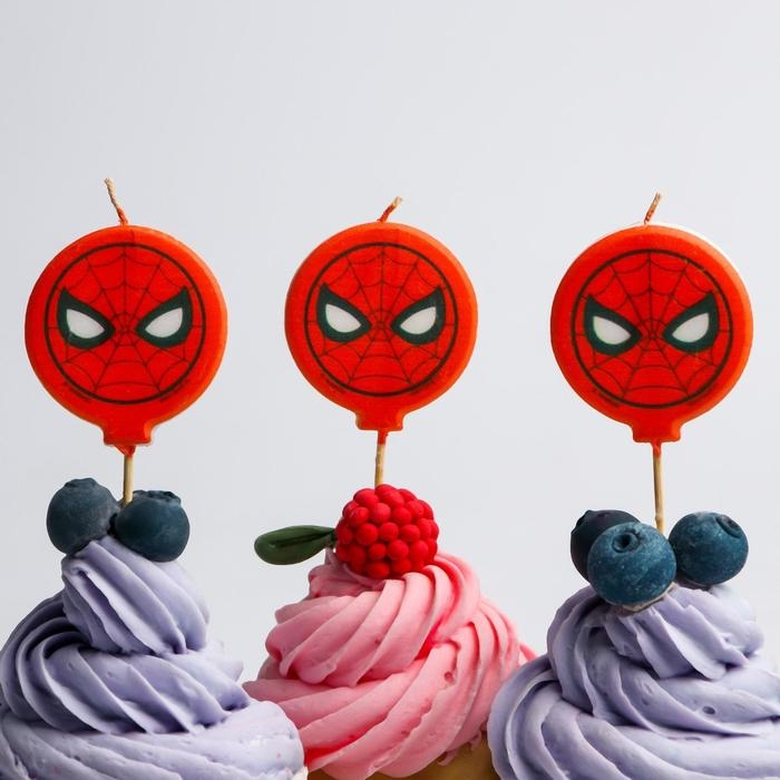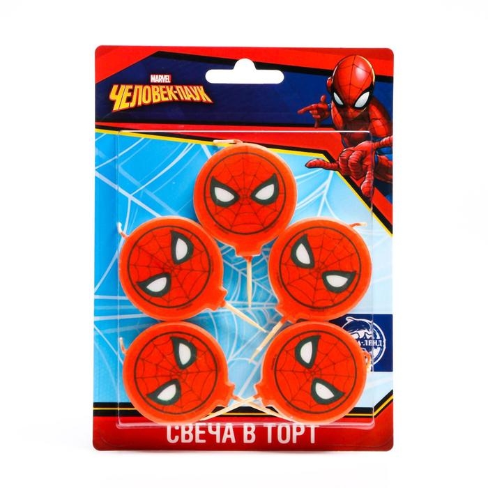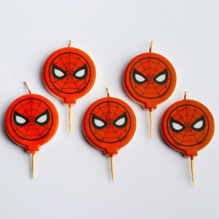 Свеча для торта "С Днем Рождения!", 5 штук, Человек-паук