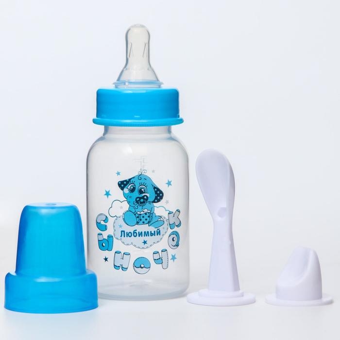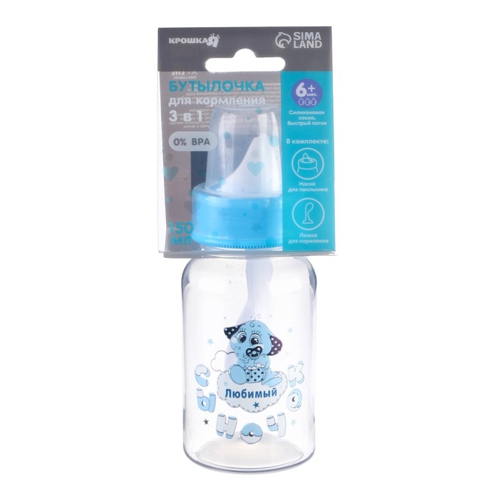 Бутылочка для кормления 3 в 1 «Любимый сыночек», в комплекте ложка и носик-поильник, 150 мл, от 6 мес., голубой