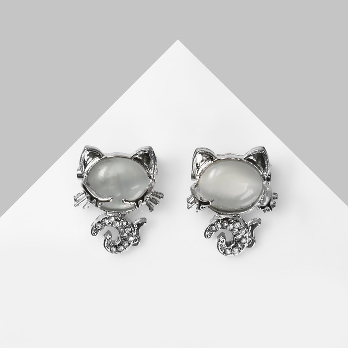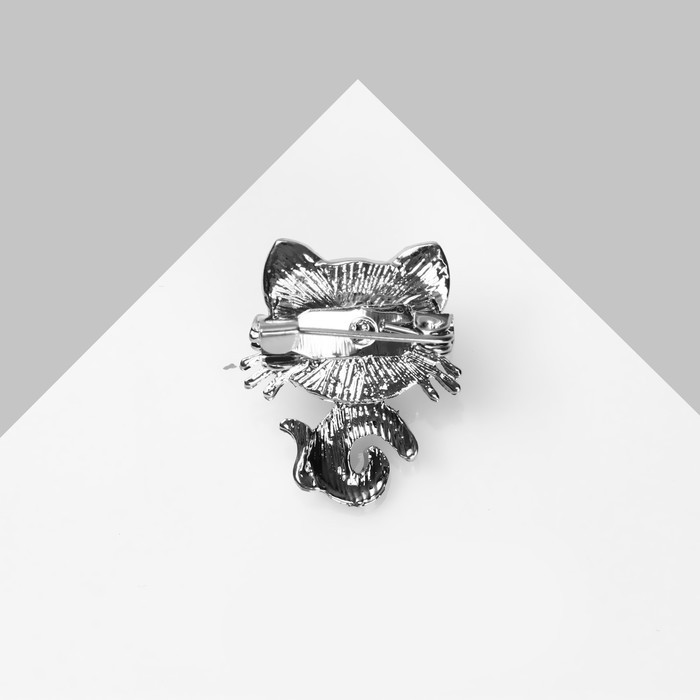 Брошь «Кошечка» спящая, цвет белый в серебре (неделимая фасовка 12 шт., цена за шт.)