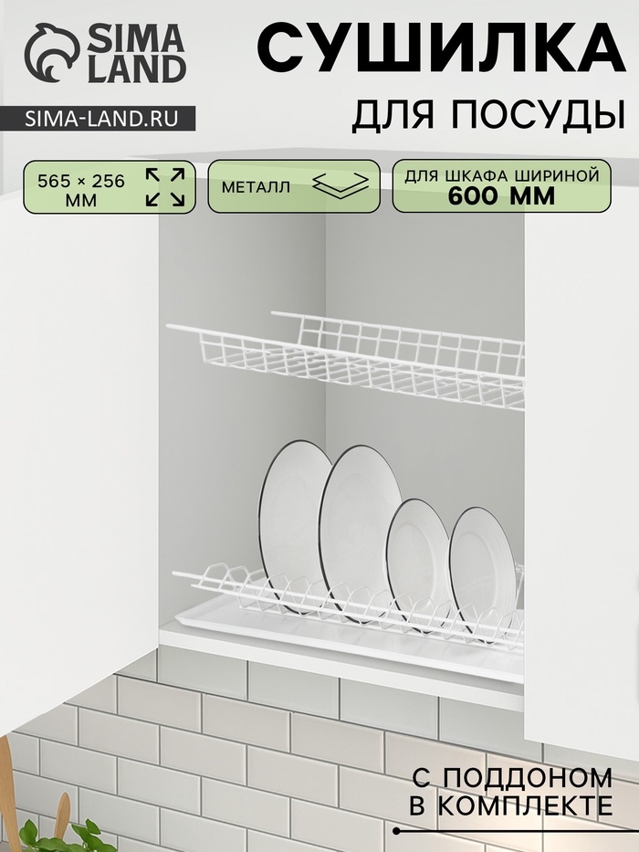 Сушилка для посуды с поддоном для шкафа 60 см, 56.5×25.6 см, белая