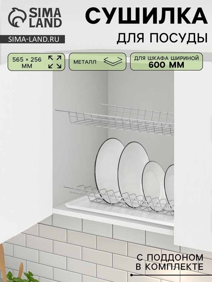 Сушилка для посуды с поддоном для шкафа 60 см, 56.5×25.6 см, хром