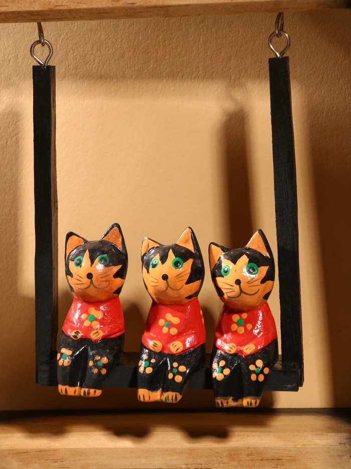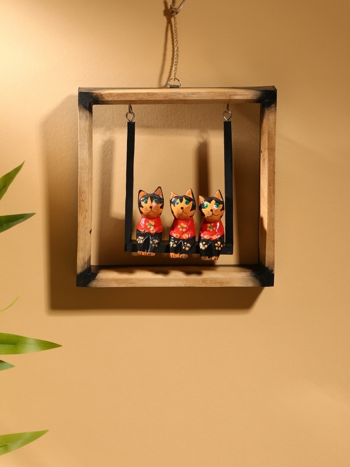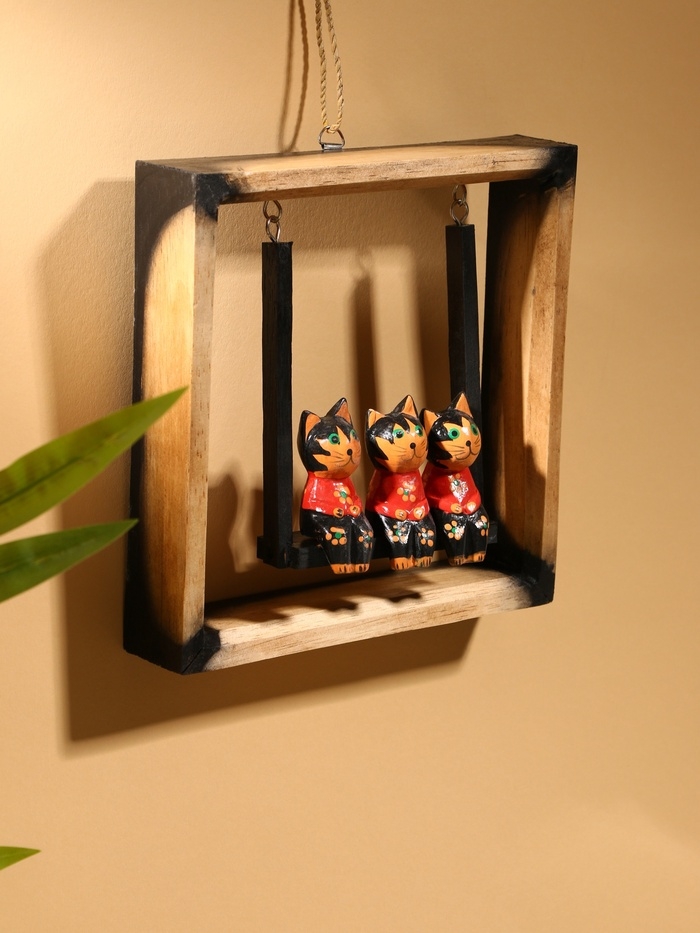 Сувенир интерьерный "Кошки на качелях" дерево 19х19 см