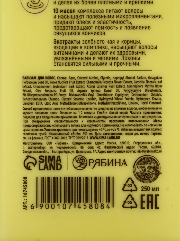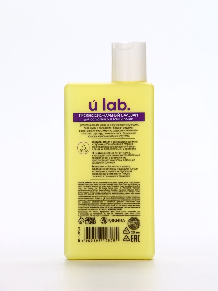 Профессиональный укрепляющий бальзам для ломких волос с комплексом масел и экстрактов, 250 мл ULAB