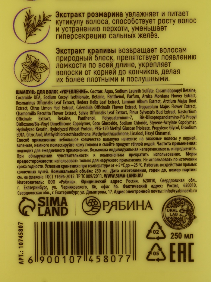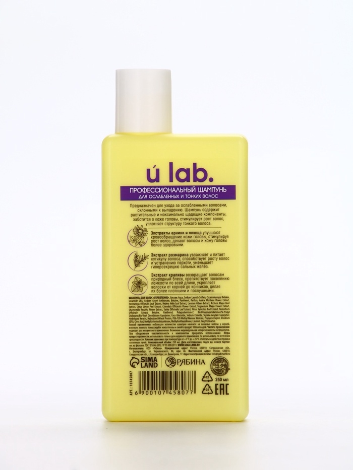 Профессиональный укрепляющий шампунь для ломких волос с комплексом масел и экстрактов, 250 мл ULAB