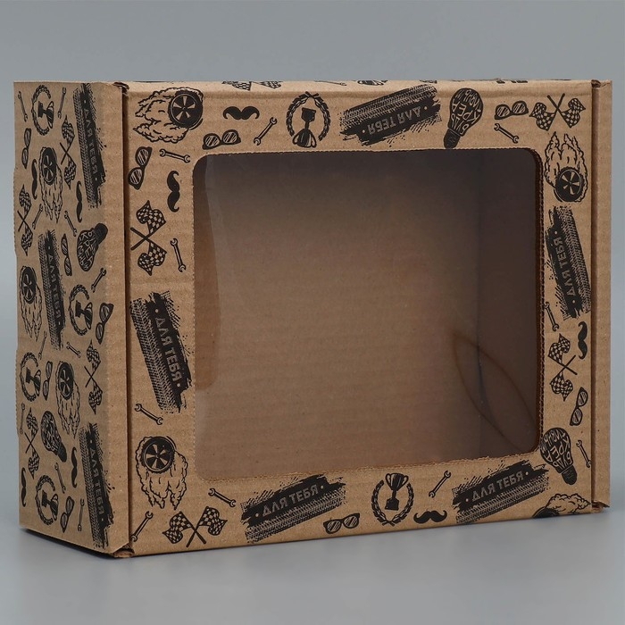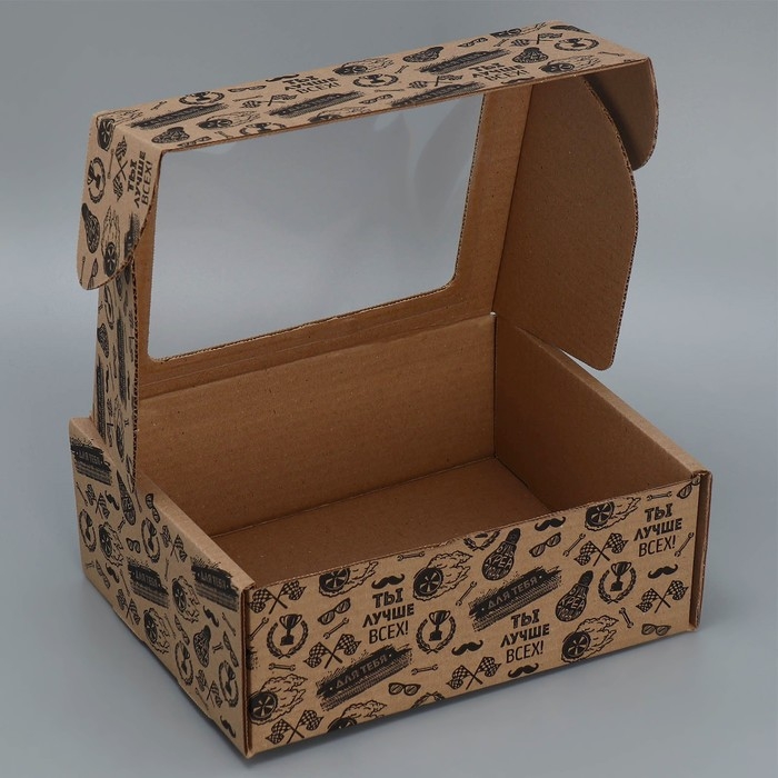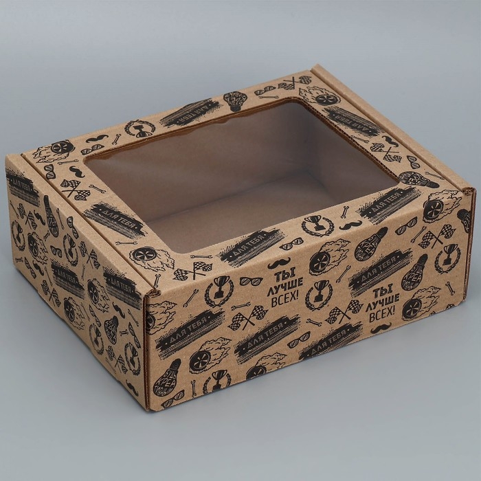 Коробка подарочная сборная с окном, упаковка, «Лучше всех», бурый, 27 х 10 х 21 см