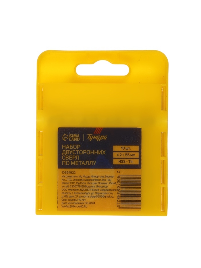 Набор двусторонних сверл по металлу ТУНДРА, HSS-Tin, 4.2 х 55 мм, 10 шт.