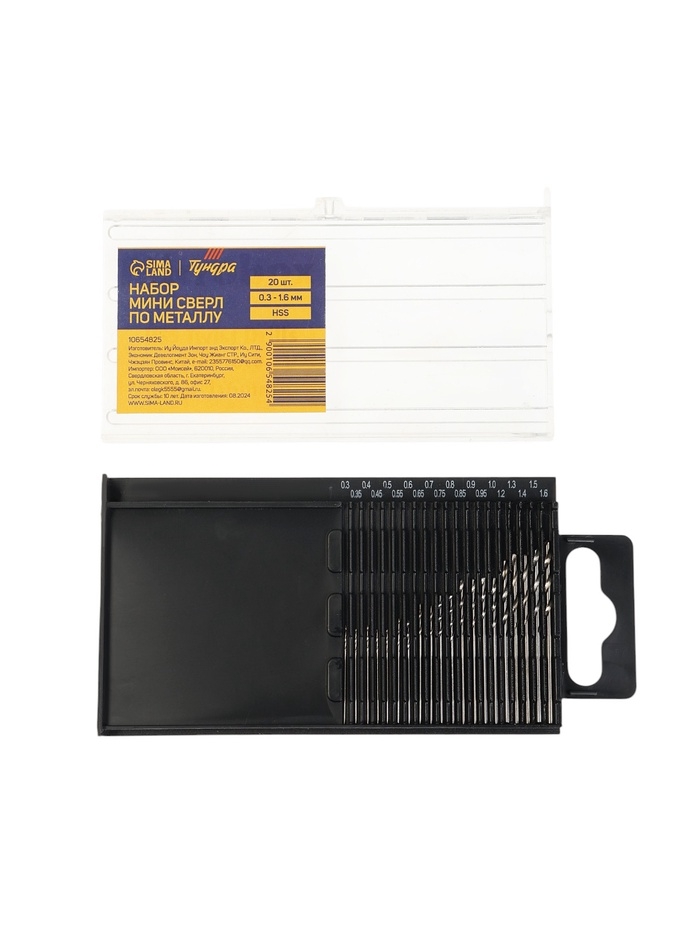 Набор мини сверл по металлу ТУНДРА, HSS, 0.3 - 1.6 мм, 20 шт.