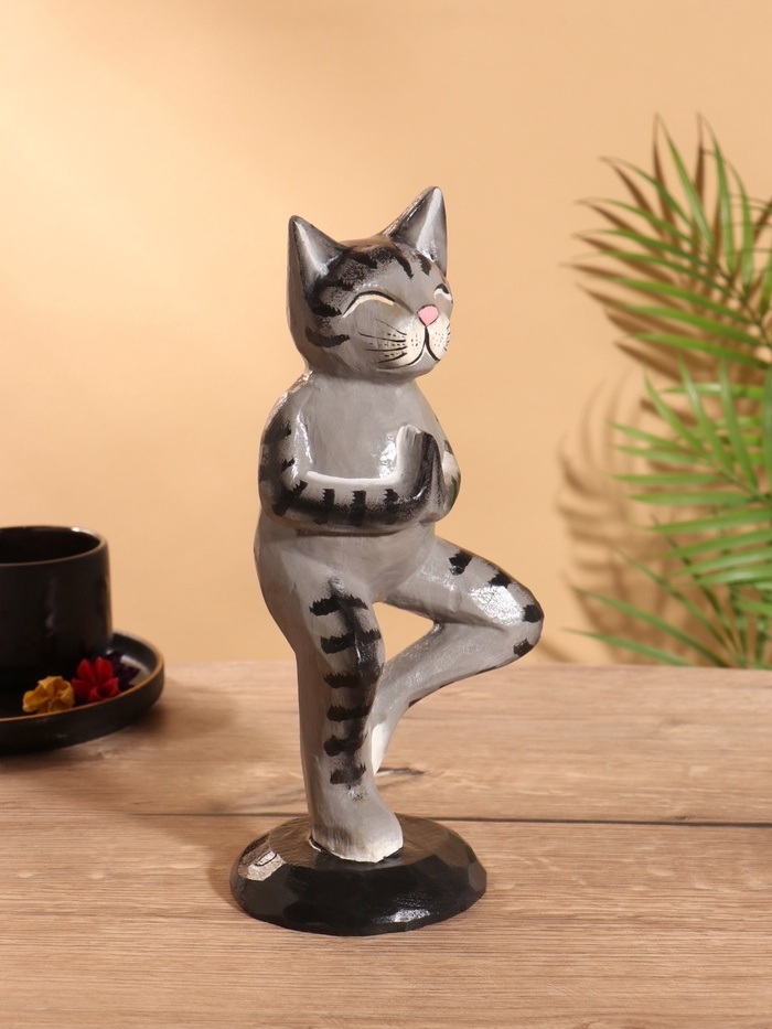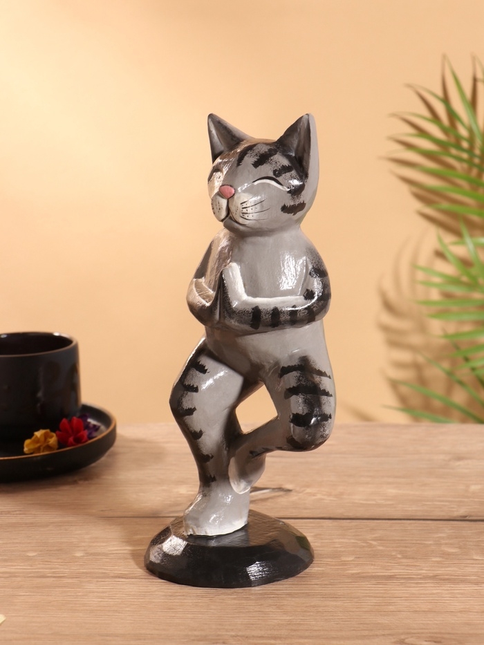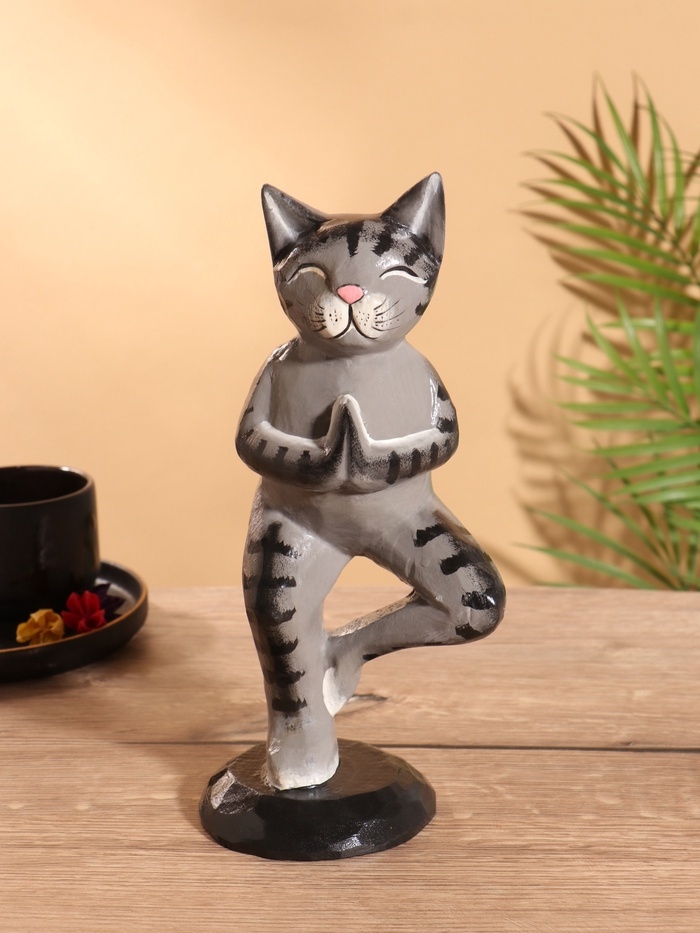Сувенир интерьерный "Кот-йог" дерево 28 см