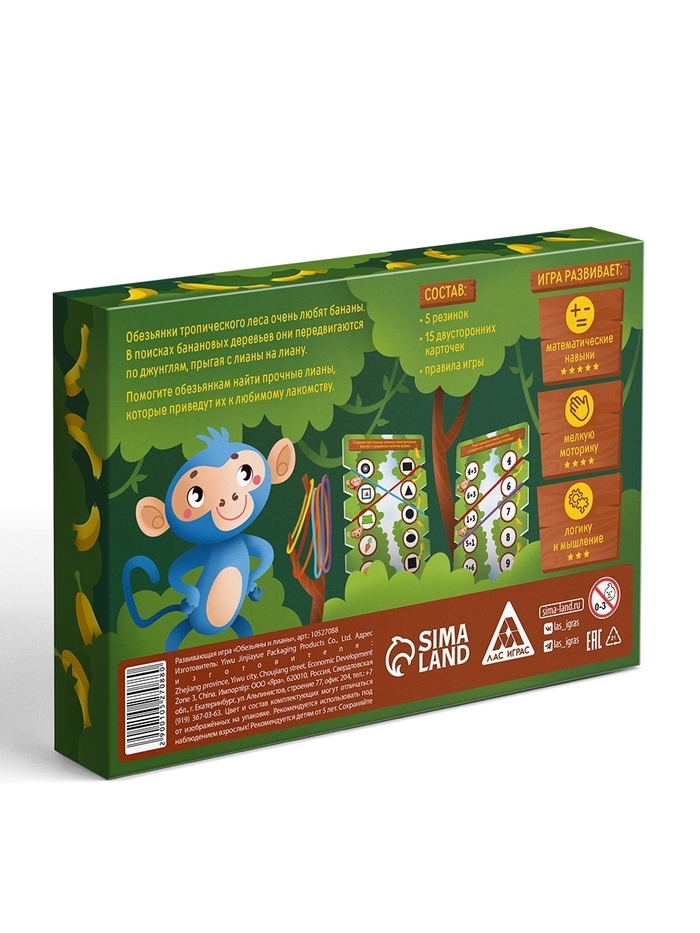 Настольная игра «Обезьяны и лианы», развивающая, 15 карт, 5+
