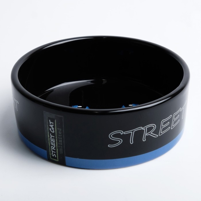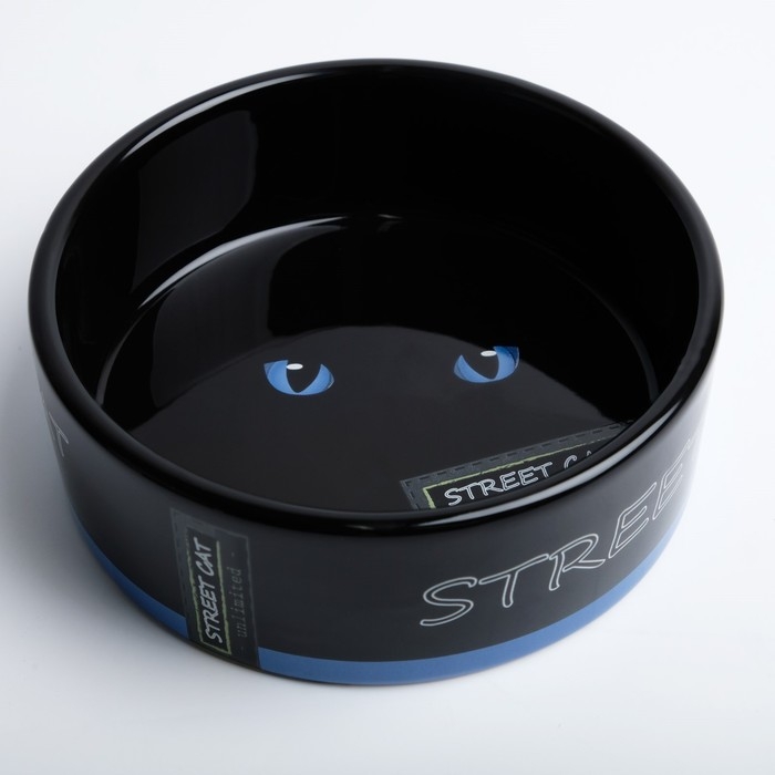 Миска керамическая "Черный кот" 300 мл 12,5 х 4,5 см, черно-синяя