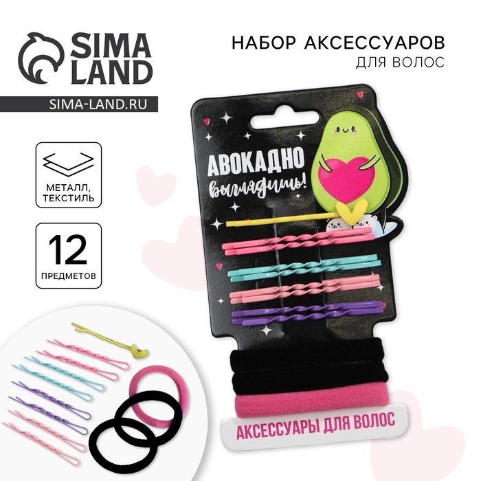 Резинки и невидимки для волос «Авокадо», 12 шт