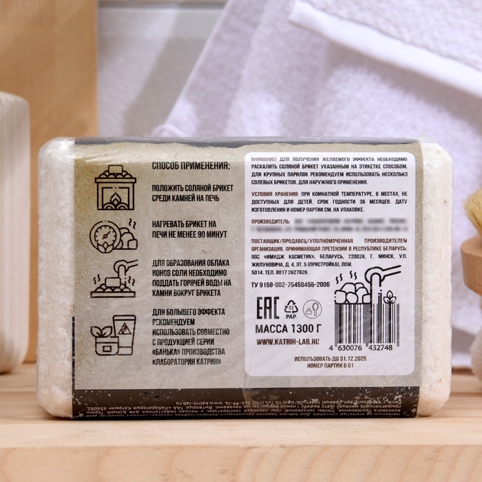 Соляной брикет для бани "Банька" противопростудный, 1300 г