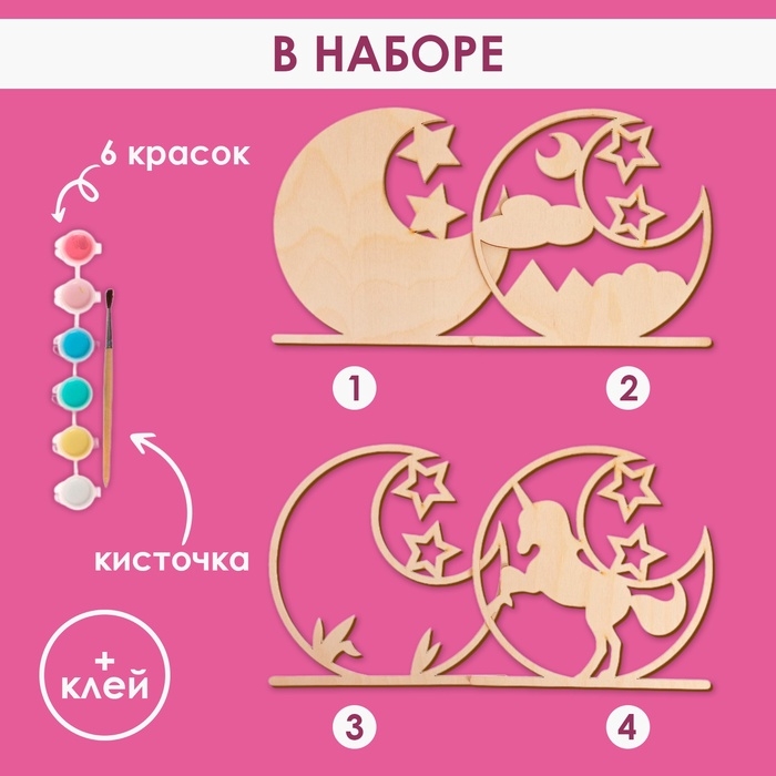 Этот набор создан для юных волшебников. В одной фигурке спрятан целый сюжет, который необходимо собрать. Но для начала раскрасьте деревянные заготовки: можете повторить цвета с упаковки или проявить фантазию и раскрасить элементы на свой вкус.