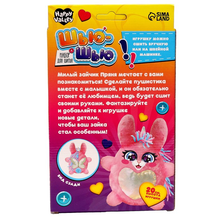 Милый зайчик Пряня мечтает с вами познакомиться! Сделайте пушистика вместе с малышкой, и он обязательно станет её любимцем, ведь она сошьёт его сама. Фантазируйте и добавляйте к игрушке новые детали, чтобы ваш зайка был особенным.