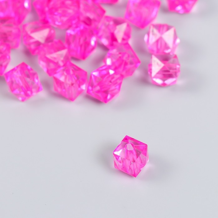Бусины пластик "Кристалл многогранник. Фуксия" прозрачный набор 20 гр 1х1х1 см