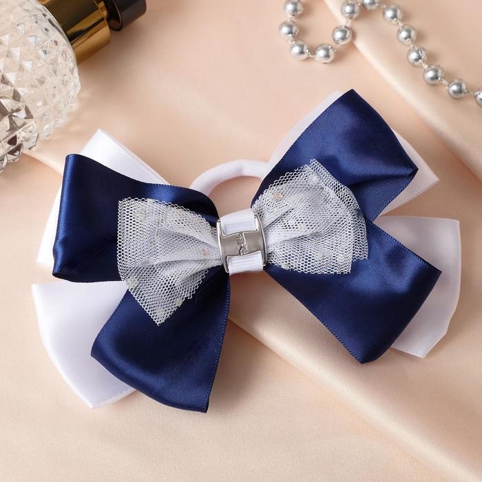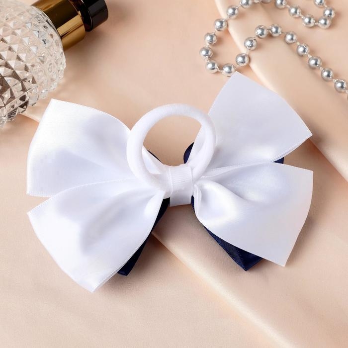 Резинка для волос "Школьница" бант пряжка, 12 см, бело-синий