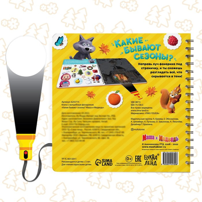 Книга с фонариком «Какие бывают сезоны?, 22 стр., 5 игровых разворотов, Маша и Медведь»