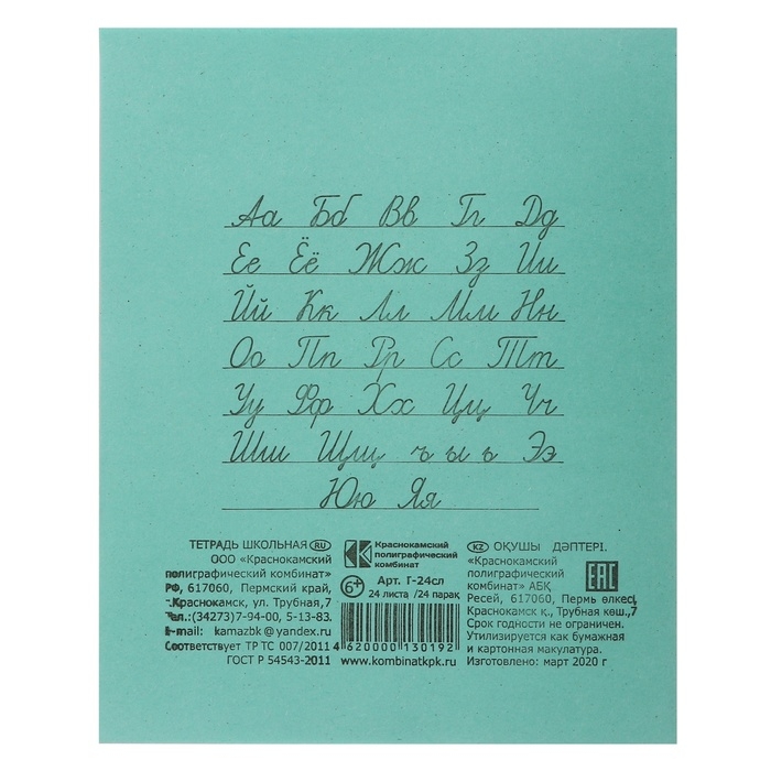 Комплект тетрадей из 20 штук, 24 листа в линию КПК "Зелёная обложка", блок №2, белизна 75% (серые листы)