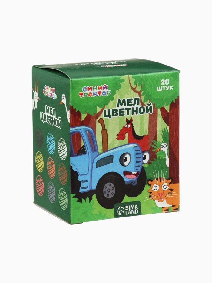 Мелки цветные школьные, набор 20шт "Синий трактор", прямоугольные