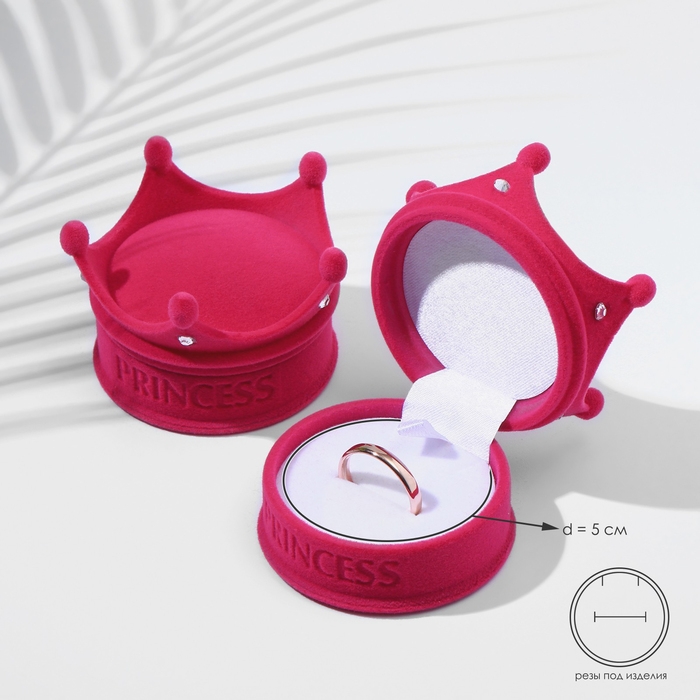Футляр бархатный под кулон/кольцо «Корона», 5,5×5,5×4,5, цвет розовый, вставка белая