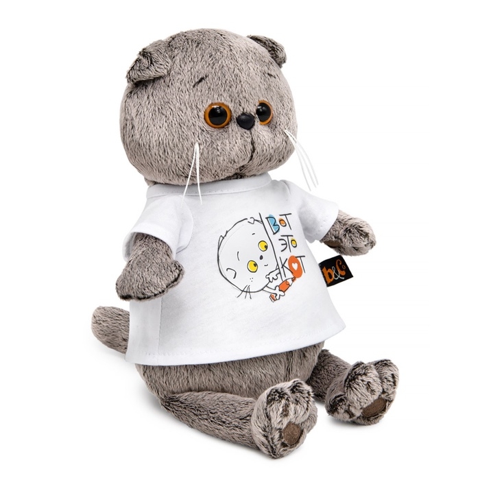 Мягкая игрушка «Кот Басик в футболке с принтом», 19 см