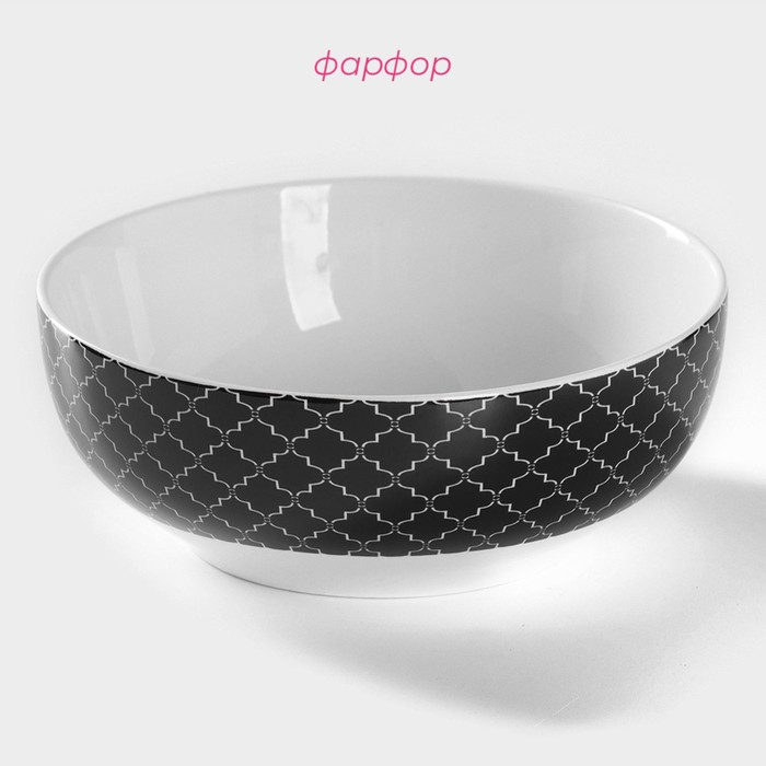 Салатник фарфоровый Доляна «Марокко», 600 мл, d=15,5 см, цвет чёрный