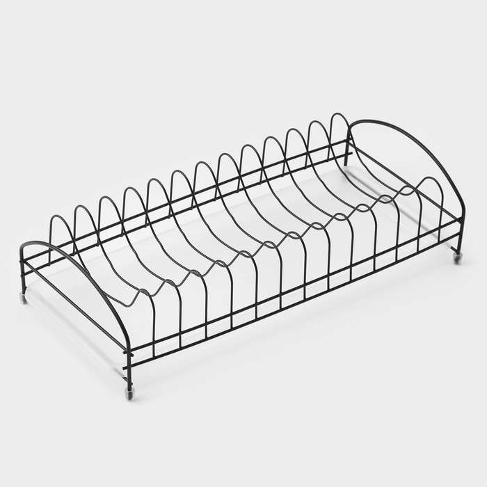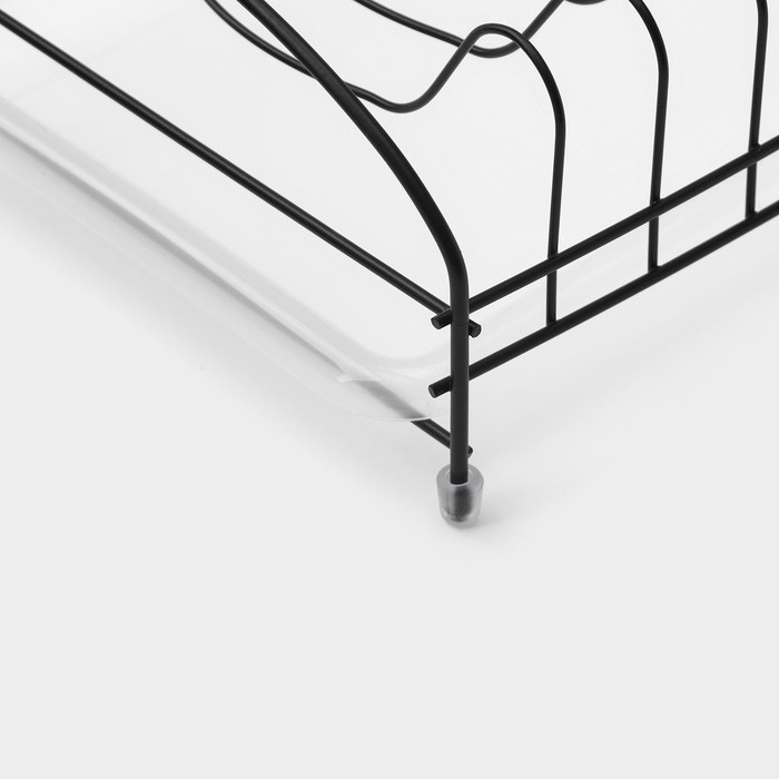 Сушилка для тарелок с поддоном Доляна, на 12 предметов, цвет чёрный, поддон МИКС
