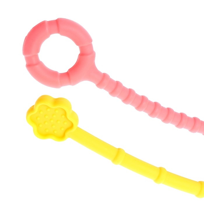 - Верёвочки-шнурки выполнены из пищевого силикона, их можно грызть. Они будут мягко массировать дёсны и облегчат боль при прорезывании зубов. Такой материал гипоаллергеннен и безопасен для малышей.