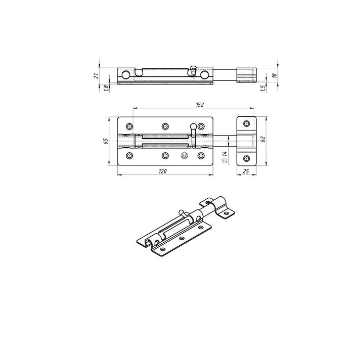 Задвижка дверная , 100 мм по основанию, оцинкованная