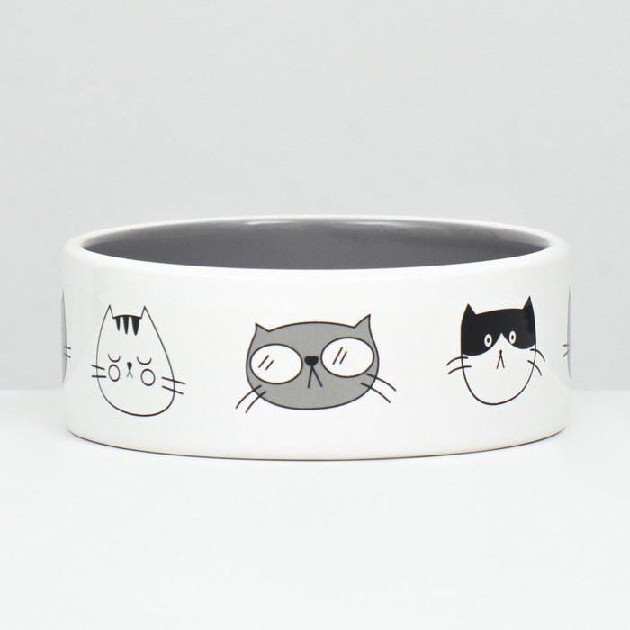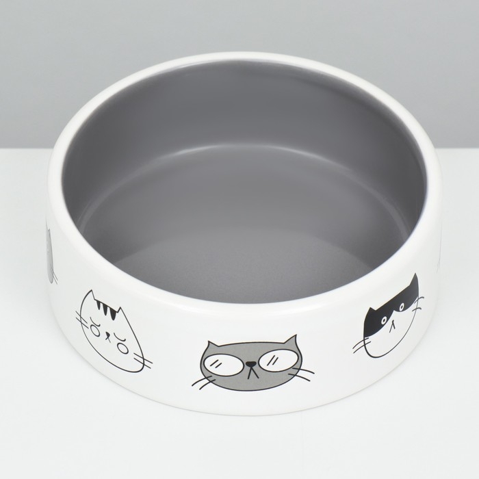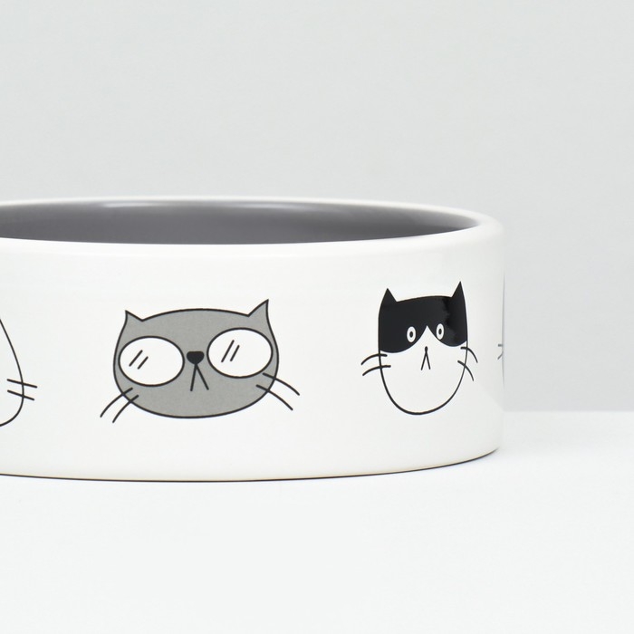 Миска керамическая "Четыре кота" 300 мл 12,5 x 4,5 cм, белая/серая