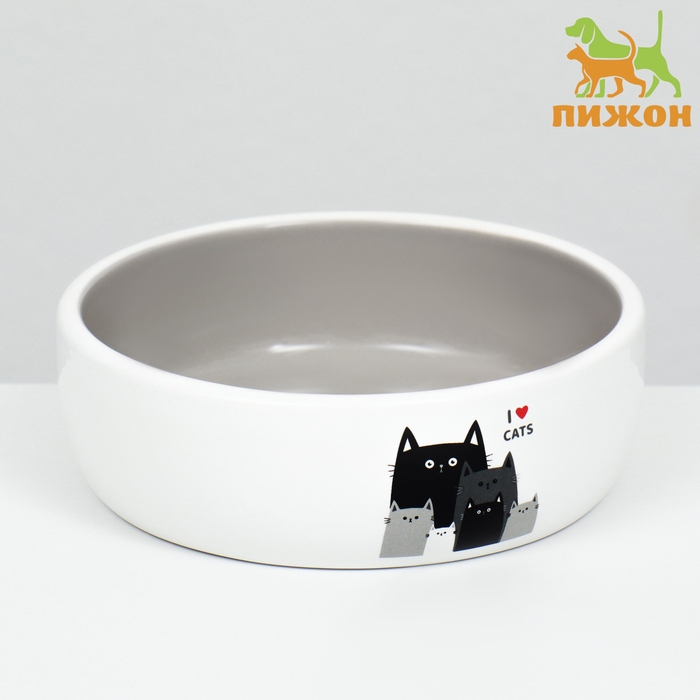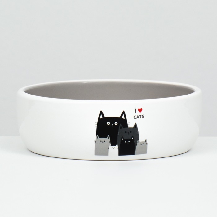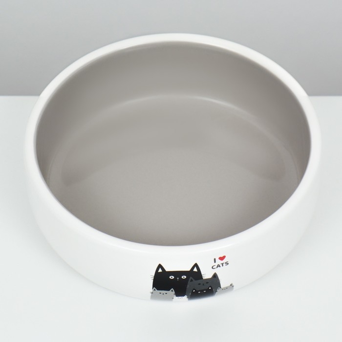 Миска керамическая "Любимые коты" 300 мл 13,4 x 4 cм, серо-белая