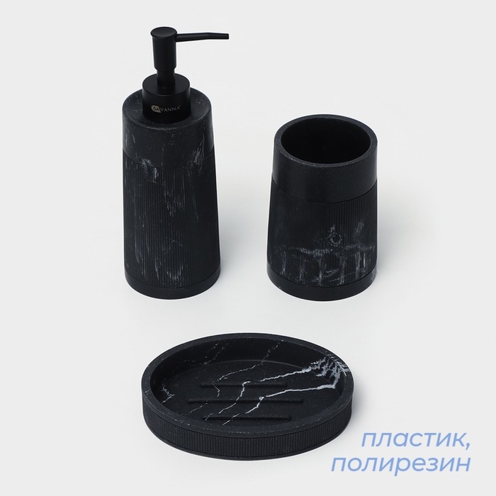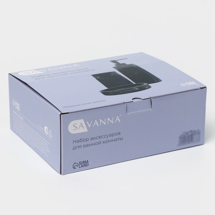 Набор аксессуаров для ванной комнаты SAVANNA, 3 предмета, дозатор, стакан, мыльница, чёрный