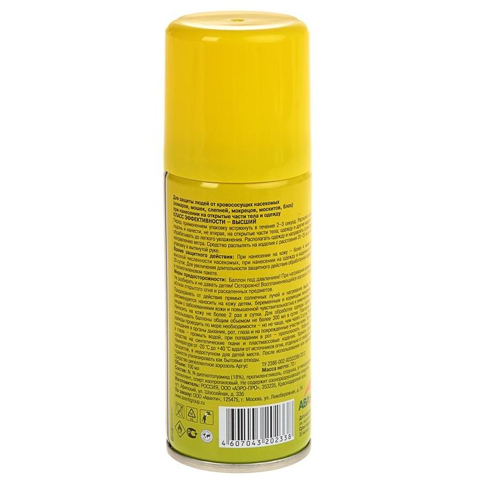 Аэрозоль репеллентный от комаров, мошек, слепней "Argus",100 мл