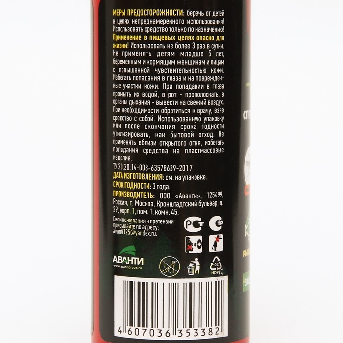 Спрей репеллентный от комаров, клещей, мошек, слепней, с курком "ARGUS EXTREME", 200 мл