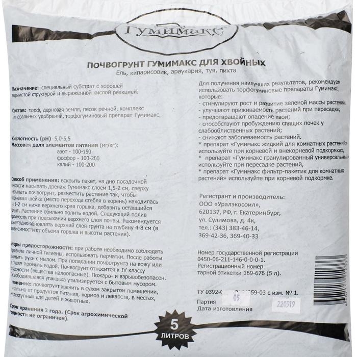Почвогрунт Гумимакс для хвойных 5 литров