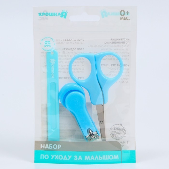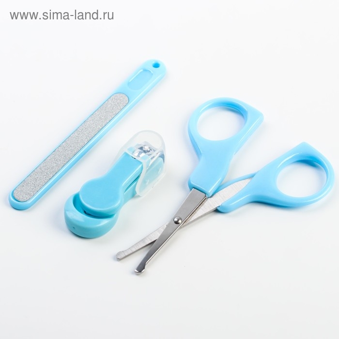 Детский маникюрный набор, 3 предмета: ножницы, пилка, книпсер, от 0 мес., цвет голубой