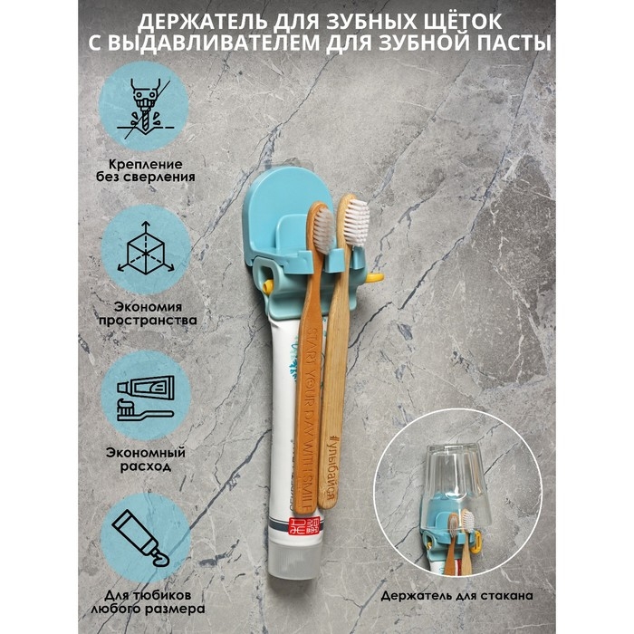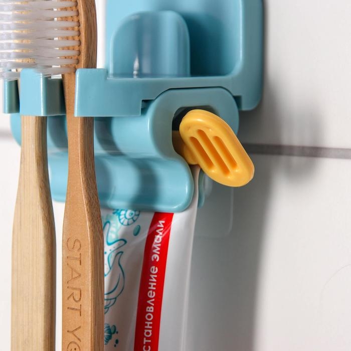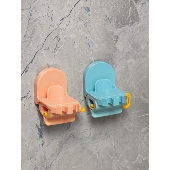 Держатель для зубных щёток с выдавливателем для пасты на липучке, 7×5,2×8 см, цвет МИКС
