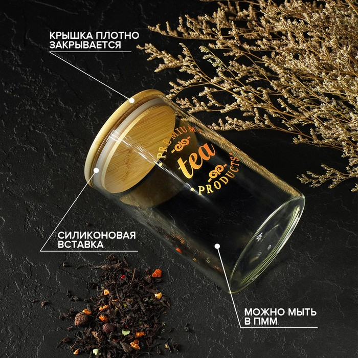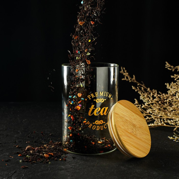 Банка стеклянная для хранения сыпучих продуктов «Эко. Чай», 1 л, 10×15 см, с бамбуковой крышкой