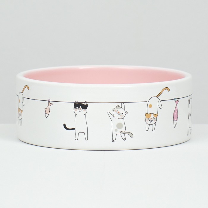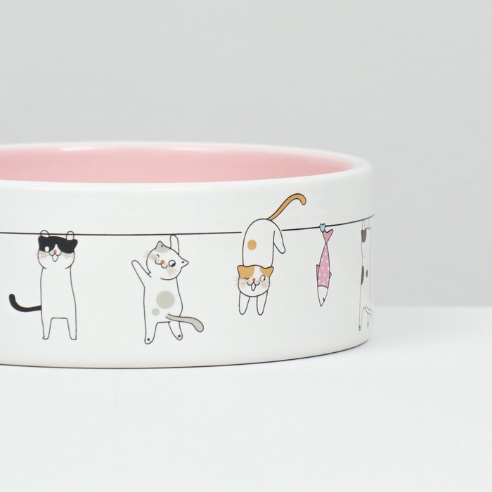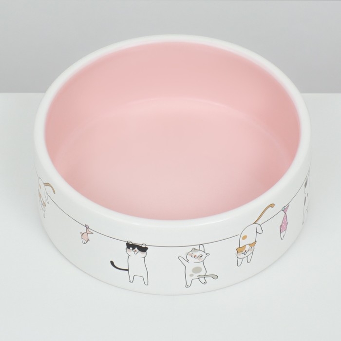 Миска керамическая "Весёлые котики" 300 мл 12,5 x 4,5 cм, бежево-белая
