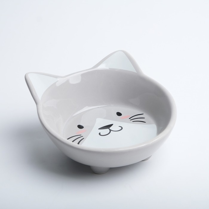 Миска керамическая "Голова кота" 150 мл 14 x 12,5 x 6,5 cм, серая