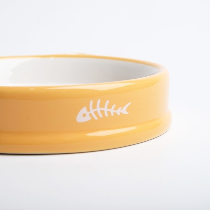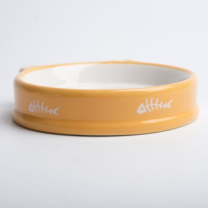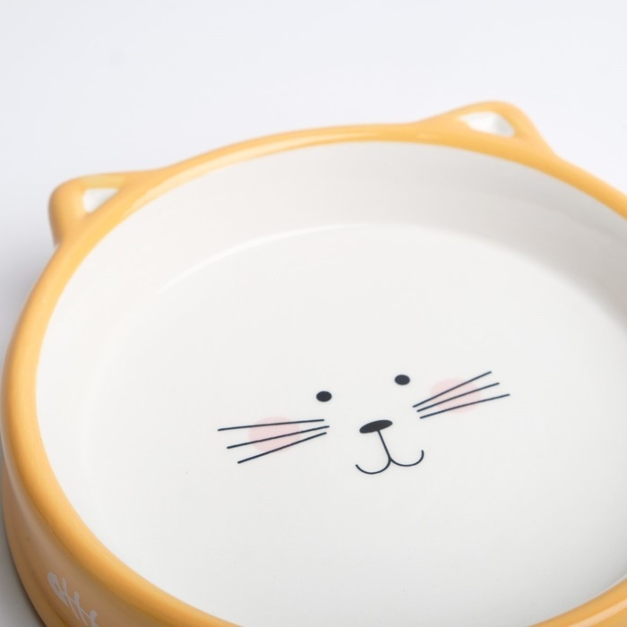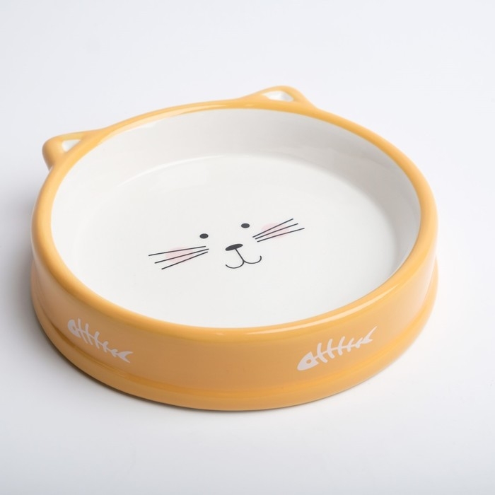 Миска керамическая "Голова кота 5" 200 мл, 15 x 3,5 cм, белая/оранжевая