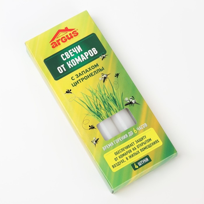 Антимоскитные свечи ARGUS, с маслом цитронеллы, 4 свечи