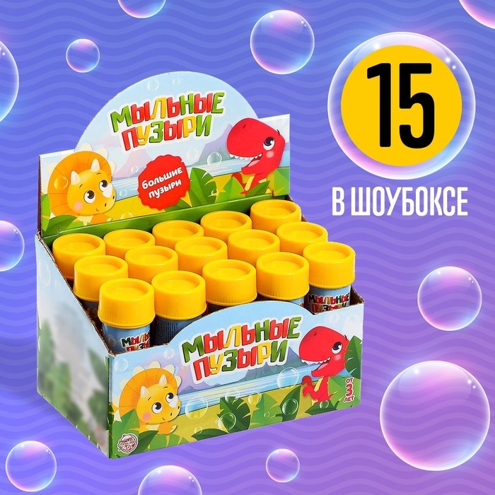 Мыльные пузыри "Динозавры", 45 мл (набор 15шт)