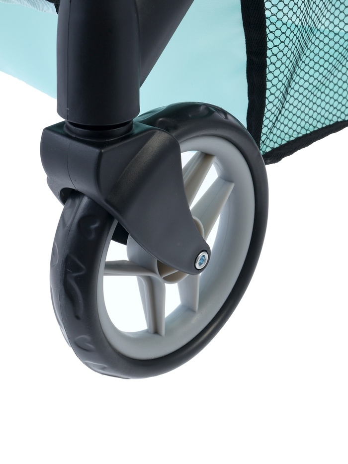 - Ручка регулируется по высоте — подходит для детей разного возраста. Передние поворотные колёса обеспечивают плавное движение и лёгкость управления. Четыре надёжных колеса равномерно распределяют нагрузку и делают коляску устойчивой.