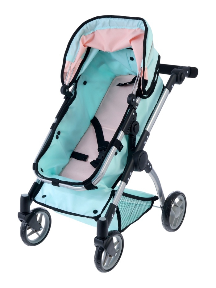 - Металлический каркас обеспечивает прочность конструкции. Ремень позволяет зафиксировать куклу внутри, чтобы она не выпала во время движения.