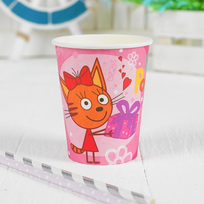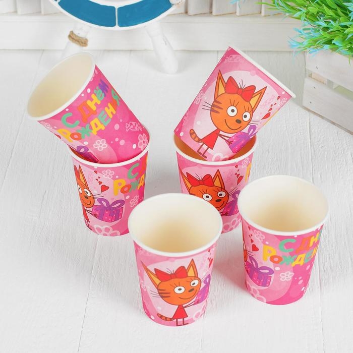 Стакан бумажный «Три кота», в наборе 6 шт., 180 мл, цвет розовый