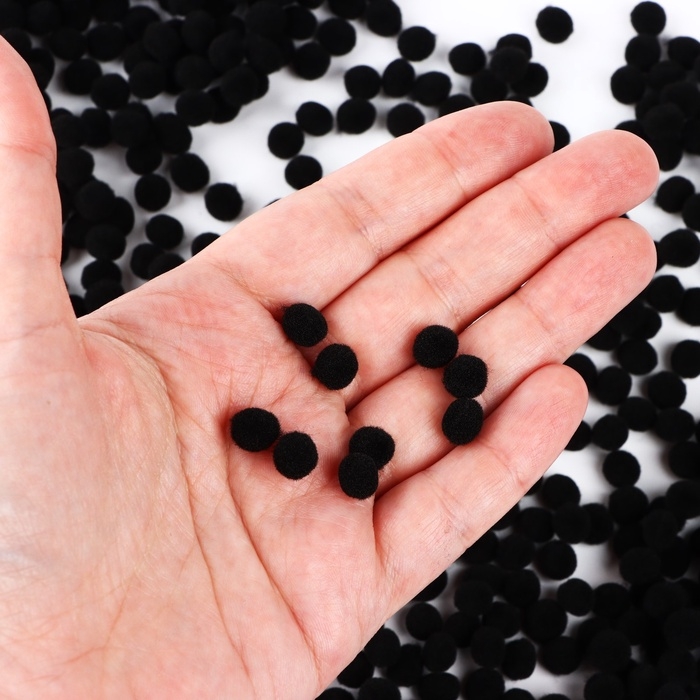 Набор текстильных деталей для декора. Помпоны для творчества «Чёрные», 55 гр